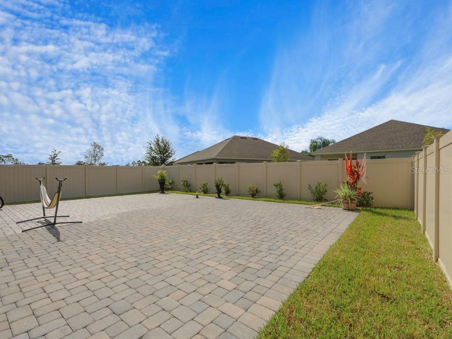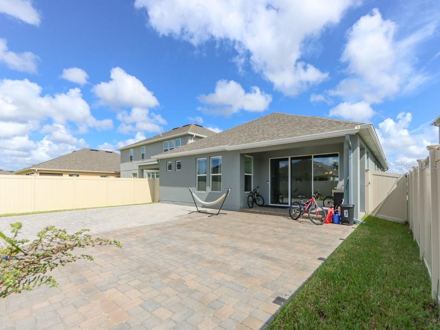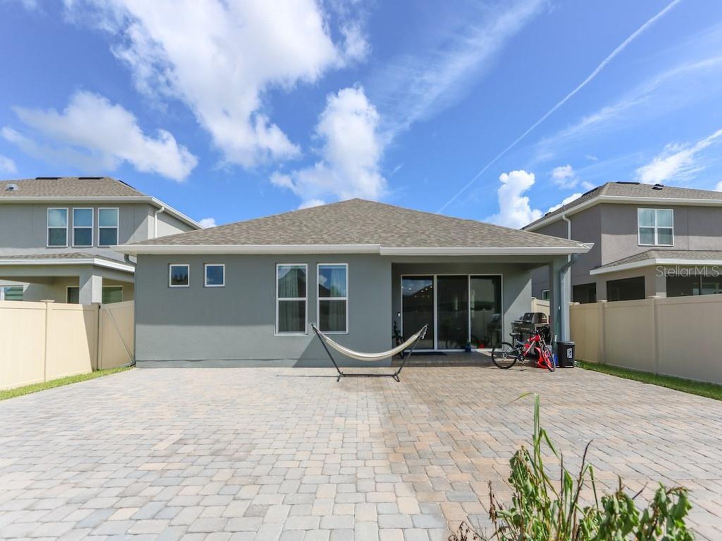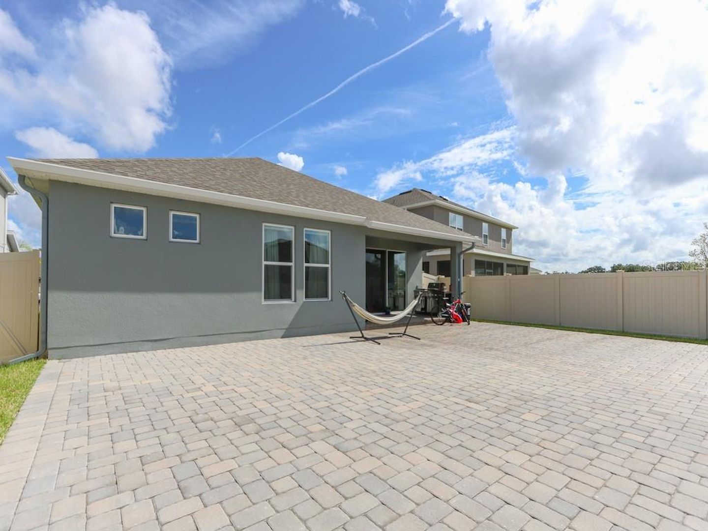 Pavers in the back yard so that you can enjoy a nice barbecue, rain gutters around the whole house. Pre-wired cables for cameras, Automatic