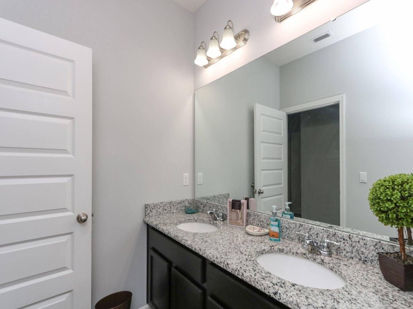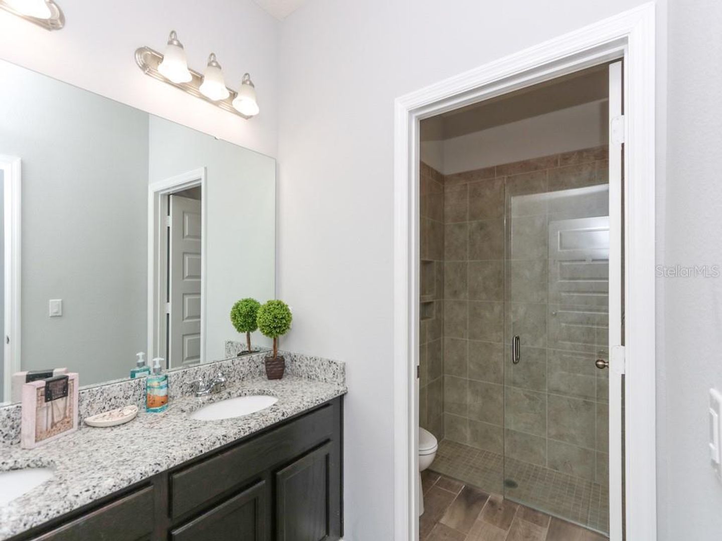 sinks, Granite counter tops with a large glass-enclosed shower, walk-in closet. This house also has bonus features that were done after purchase.
