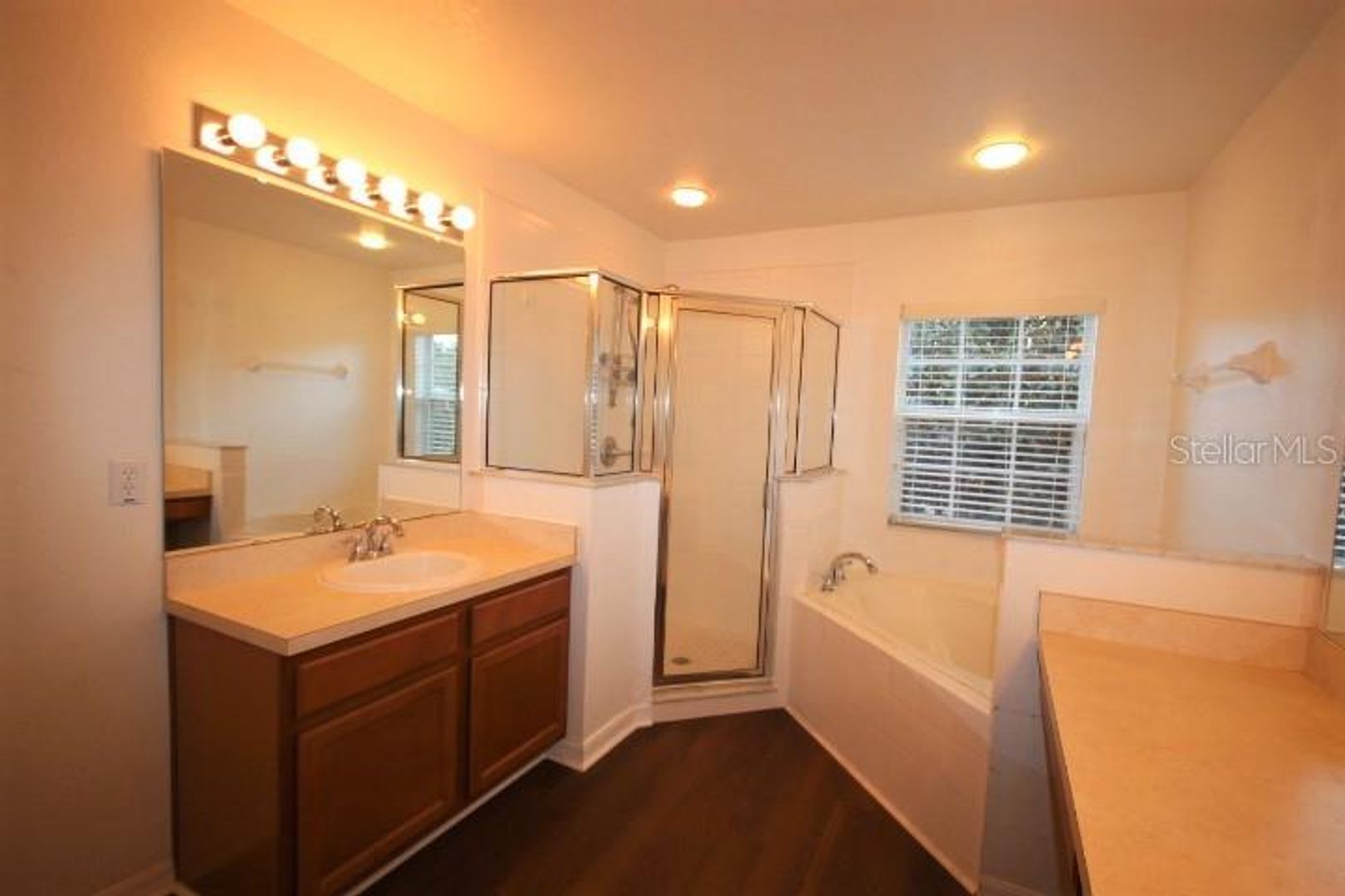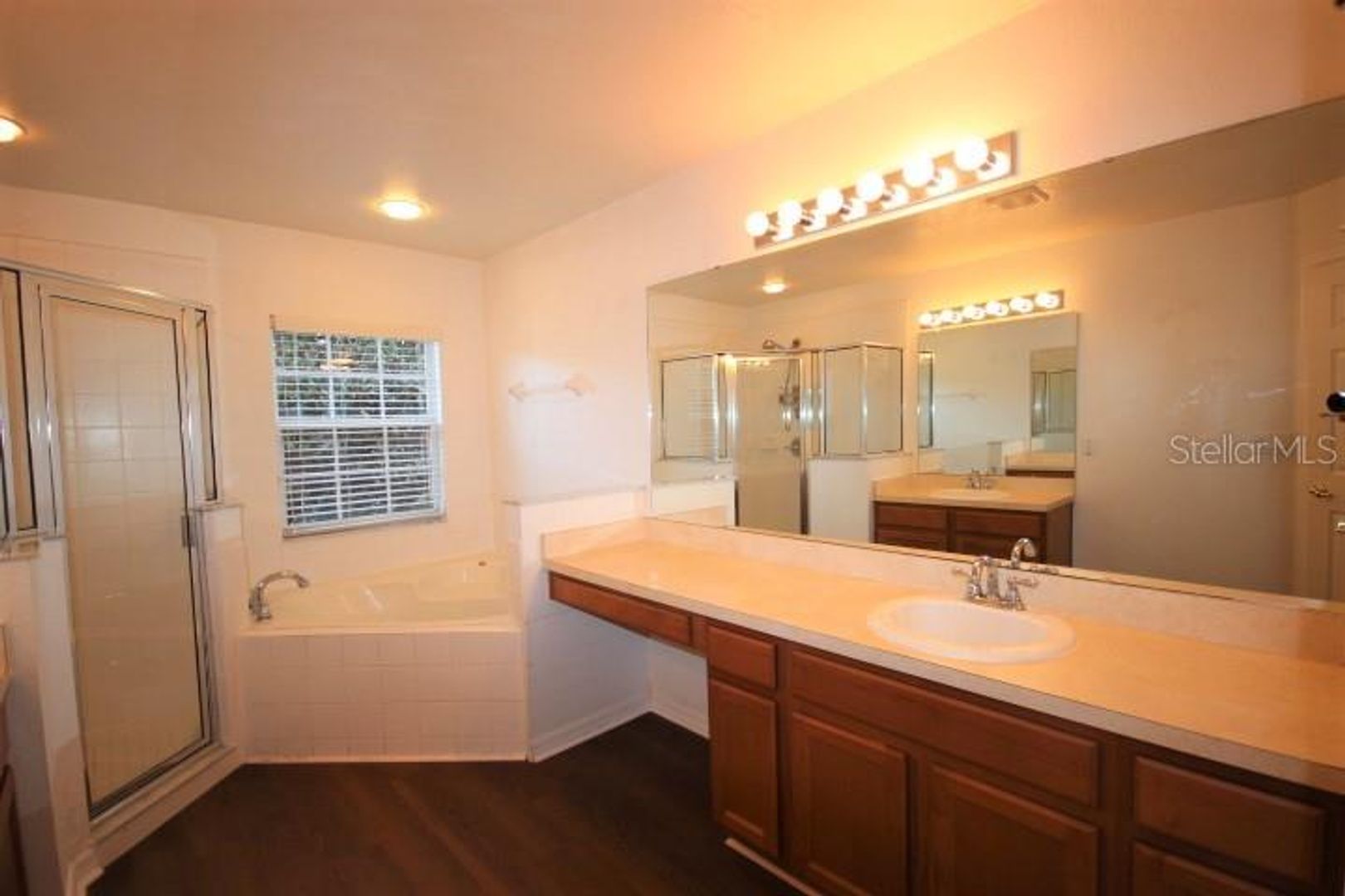 of room for king size bed and leads to the master bath with double vanities, corner garden tub and separate shower. Close to shopping, major road and schools.
