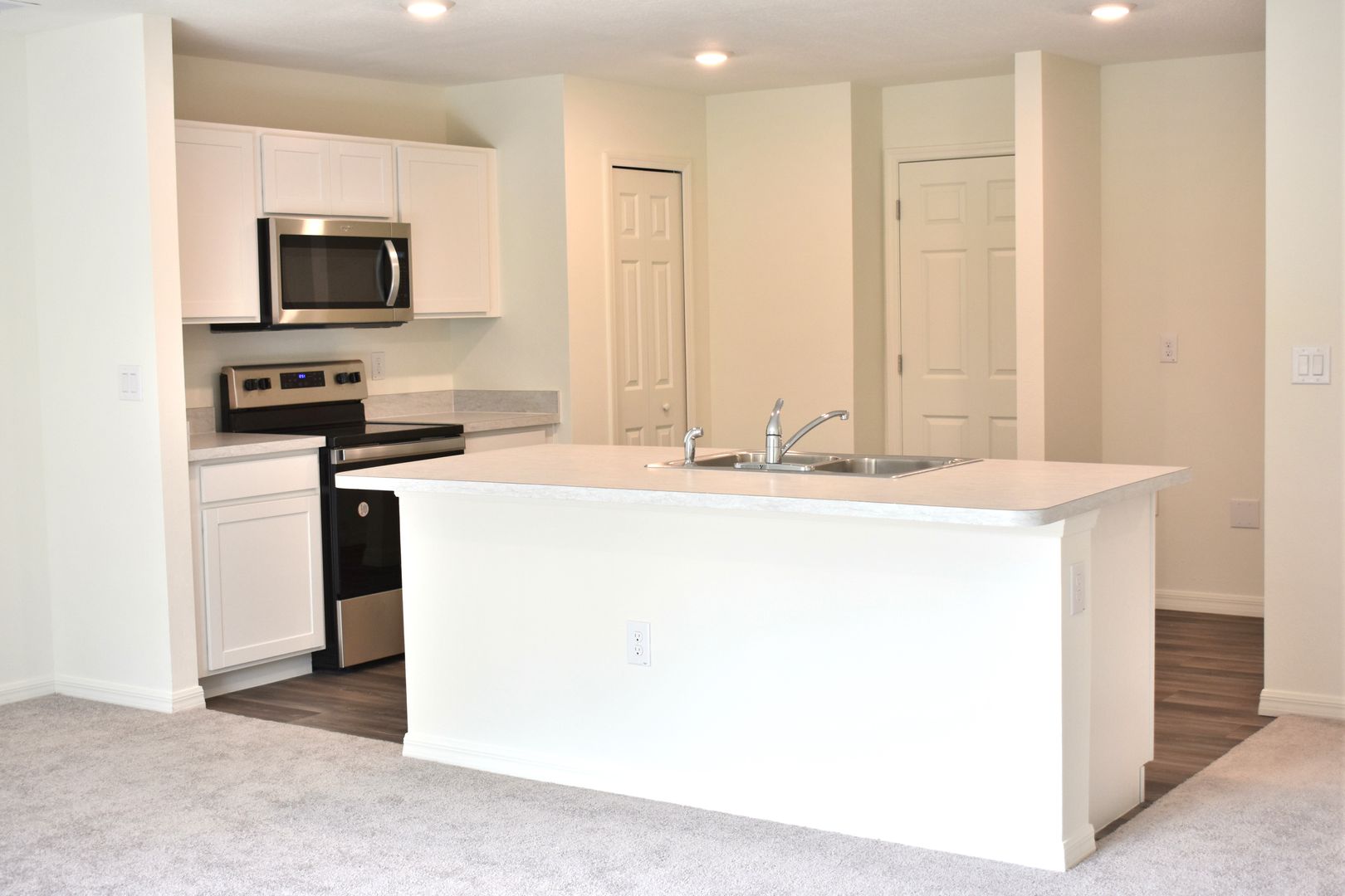 floor plan with a Beautiful Kitchen Island perfect to entertain your Family. Huge Master Bedroom on the right side of the house separated from