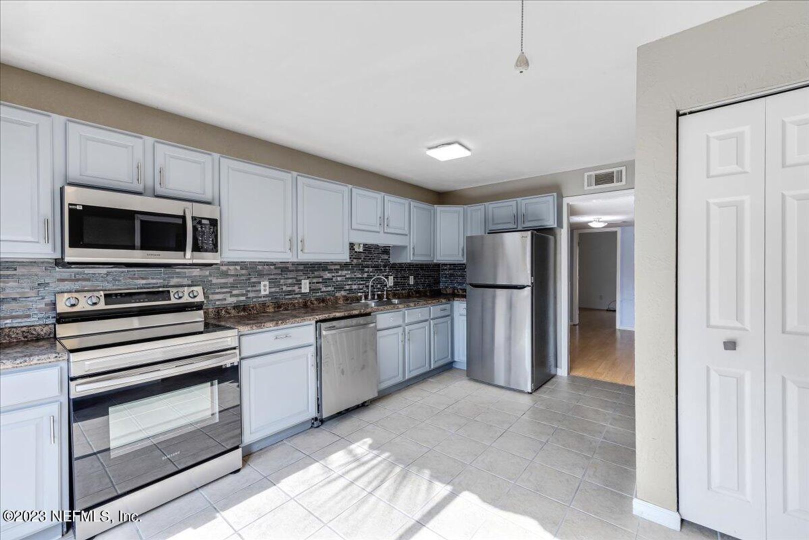 Newly Renovated! This gorgeous 3-bedroom 3 bath Townhouse with a Bonus room is move in ready! Freshly painted and upgraded with modern kitchen cabinets, beautiful backsplash, all new SS appliances. Washer & Dryer installed in unit. Convenient location, less than 30 min from beaches. Lots of space and plenty of light! Backyard Patio space for storage. Our ideal resident earns 3 times the monthly rent and has no history of evictions or landlord debt. A background and credit screening is required prior to approval. Pets are welcome, up to 60 lbs, Tenants are responsible for utilities,JEA & Teco for hot water.