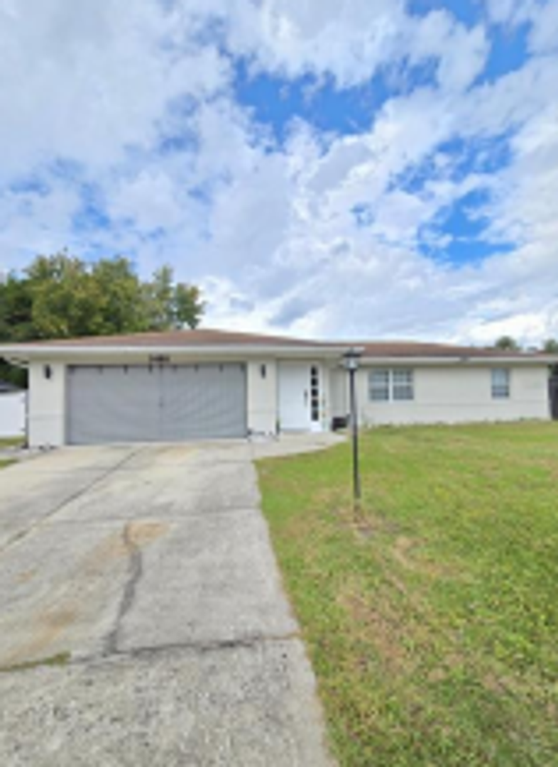 Welcome to this beautifully updated 3-bedroom, 2-bathroom home located in the desirable Deltona Lakes community. Built on a spacious corner lot, this property offers a fully fenced backyard with a sparkling pool and a large, screened patio, perfect for entertaining or relaxing in privacy. Inside, you’ll find a bright and open floor plan featuring a remodeled kitchen with modern finishes, a cozy brick fireplace in the living room, and a convenient pass-through window to the outdoor kitchen and bar area. The primary suite includes a walk-in closet and updated bath, while the additional bedrooms provide ample space for family or guests. With its combination of indoor comfort and outdoor living, this home is ideal for those seeking both style and functionality. Conveniently located near shopping, schools, and major highways, this property is ready to welcome its next tenant.