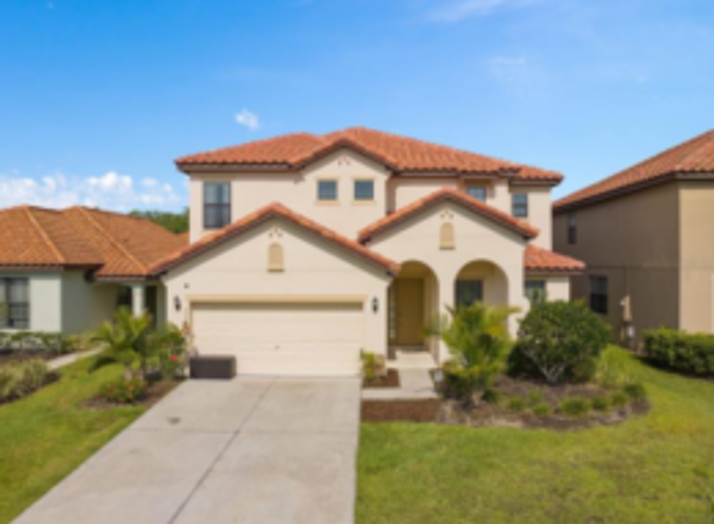 Welcome to a stunning FURNISHED 6 bedroom, 5 bath, with additional bonus room, den/office, and a sparkling screened and heated POOL, build in 2015. This amazing 3565 Sq.ft.home offers luxury living in a gated community. Walk into an open concept layout with high ceilings. Kitchen features: sleek stainless steel appliances, granite counter tops, breakfast bar and pantry. The living and dining area flow seamlessly creating a perfect space, sliding doors leads to the screened-in sparkling heated pool and covered lanai perfect for relaxing and fun in the sun. 6 generously sized bedrooms plus additional den/office and huge bonus room ideal for home theater/play room or tech area. This home has 3 master suits, the primary master features: Large glass enclosed walk in shower, granite vanity with dual sink and makeup space. Veranda Palms a GATED COMMUNITY offers resort style amenities including large pool, splash pad, fitness center and clubhouse and is only minutes from shopping, restaurants, entertaining and theme parks nearby, this one will not last.