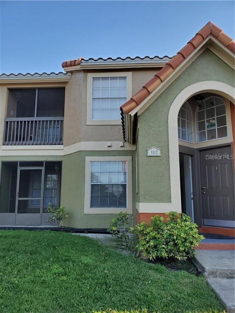 Conveniently located close to major shopping, restaurants, highways & Theme parks. This unit features a 2 bedrooms 2 bathroom and a spacious open floor plan, cathedral ceilings, screened porch with outside storage room. The Bella Vista gated community features a nice swimming pool, tennis courts, fitness center, and playground. Water, sewer, and trash are included in the rent. No pets. Security deposit is $1,500. In order for the buyer to be shown the property the buyer must have a least on bank statement showing enough funds in the account to rent. Application, background check, 2 bank statements, and 2 paystubs required for lease.
